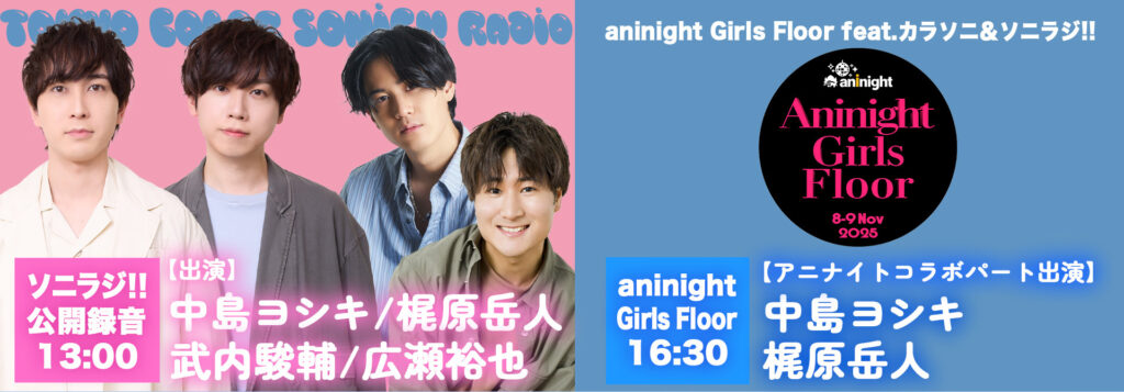 中島ヨシキさん・梶原岳人さん・武内駿輔さん・広瀬裕也さん出演「ソニラジ!!」公開録音イベントが、2025年11月9日(日)開催!
