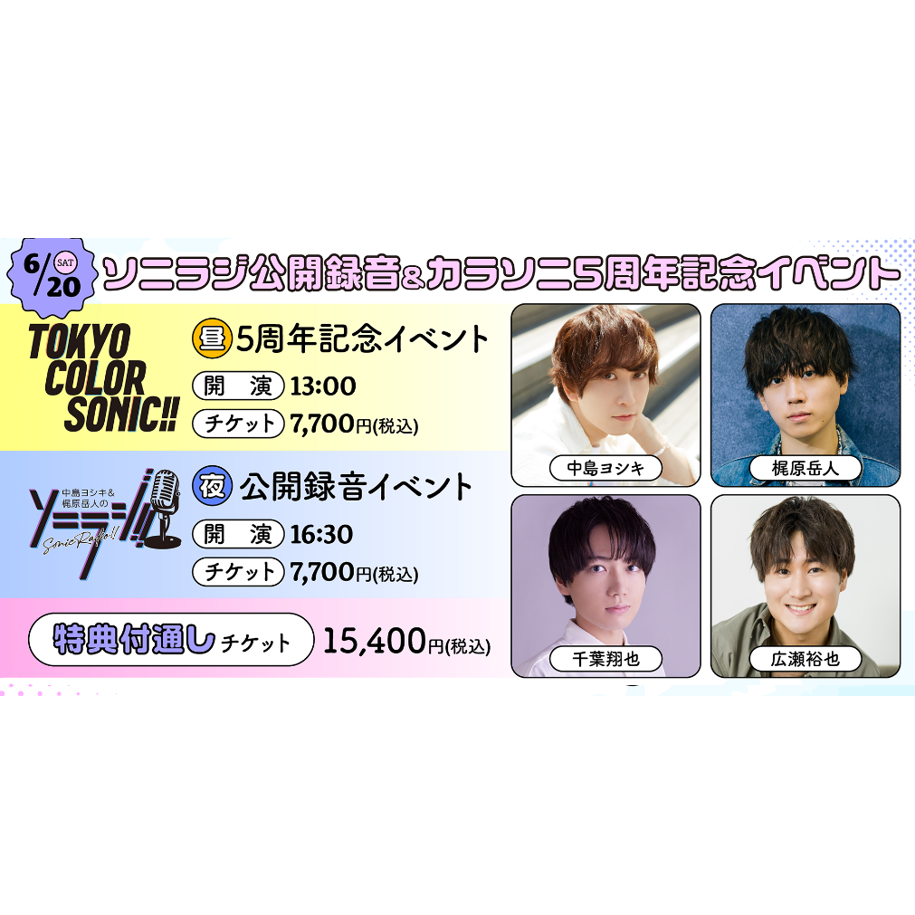【イベント情報】「ソニラジ!! 公開録音」&「カラソニ5周年記念イベント」開催決定!